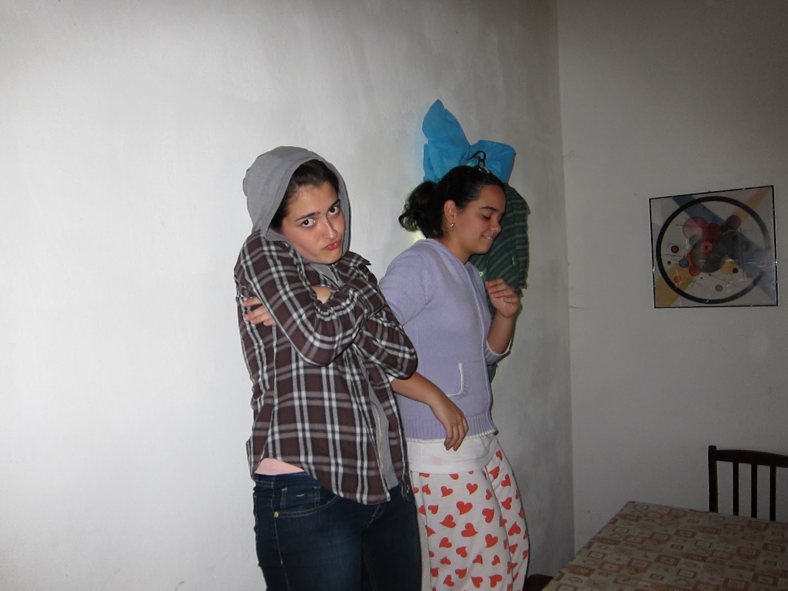 | thought it would be interesting to take a picture like this. From Left: Ana Maria looking like an old grandma, Cessi, and ME |